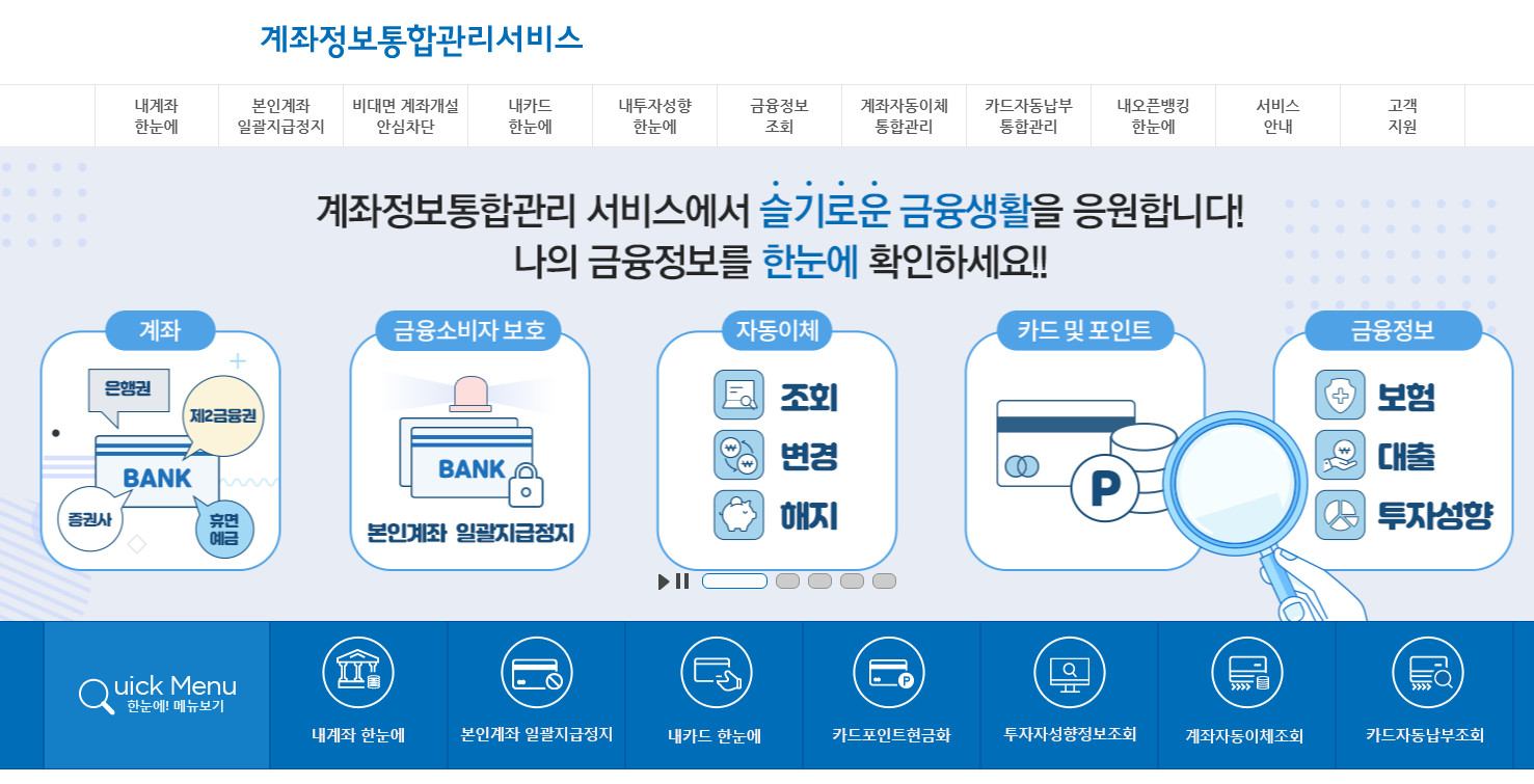 가장 강력하고 편리하게 내 통장 잔고 조회, 지출 관리의 첫걸음을 시작할 수 있는 도구는 바로 '어카운트인포(Account Info)' 서비스입니다. 금융결제원에서 제공하는 이 서비스는 여러 금융기관(은행, 증권사, 보험사, 상호금융, 우체국 등)에 흩어져 있는 나의 계좌 정보를 한곳에서 조회하고 관리할 수 있도록 해줍니다. 숨어있는 통장이나 잊고 있던 잔고를 찾는 데도 매우 유용합니다.