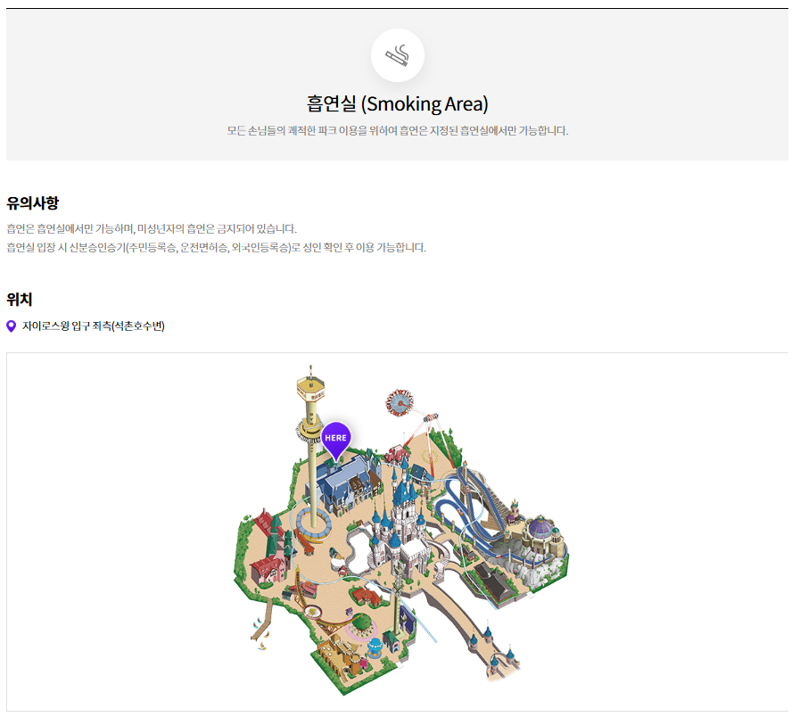 롯데월드 공식 홈페이지 이용 안내(금연 정책 확인)