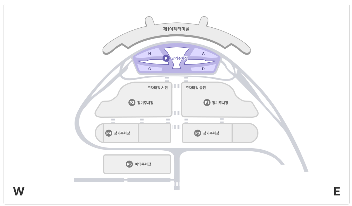 - 위치: 각 여객터미널 건물 지하 및 지상에 인접해 있습니다. (제1여객터미널 단기 주차장, 제2여객터미널 단기 주차장)