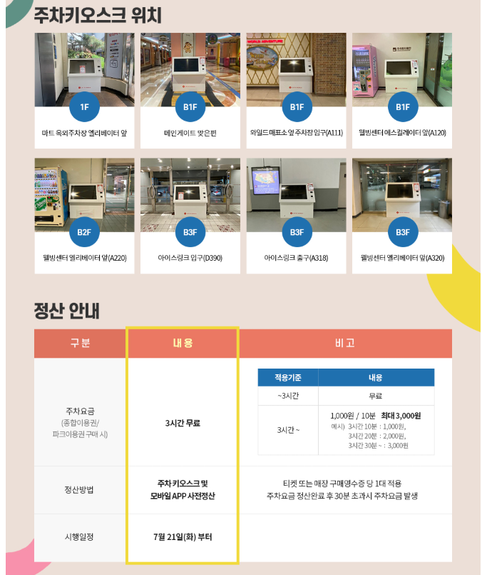 차를 가져가신다면 롯데월드 주차장 정산 정보와 키오스크 위치를 꼭 확인하세요.