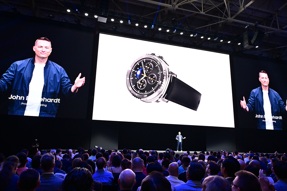 삼성전자 모바일 세일즈 부문 존 엥겔하트(John Englehardt)는 갤럭시 워치8 시리즈의 디자인 변화와 건강 관리 기능의 진화를 중심으로 발표를 이어갔다.