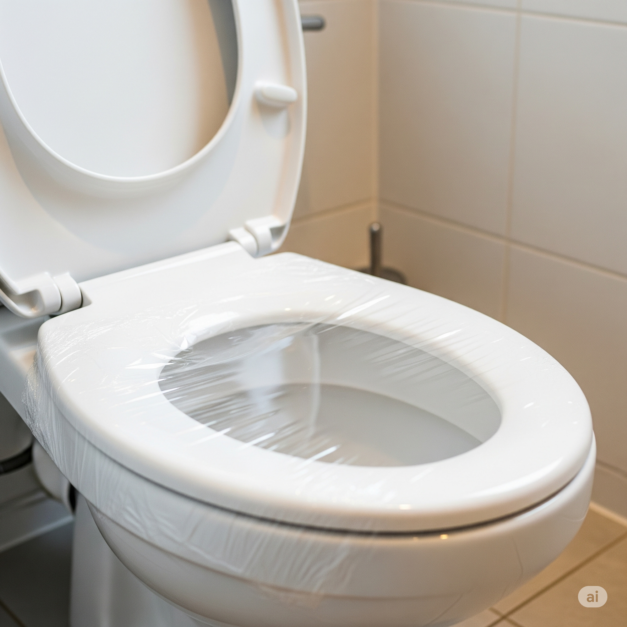 • 비닐 랩 또는 박스 테이프 밀봉: 변기 시트 전체를 비닐 랩이나 넓은 박스 테이프로 완전히 밀봉합니다. 공기가 새어나가지 않도록 틈 없이 여러 겹으로 꼼꼼히 붙이는 것이 중요합니다.