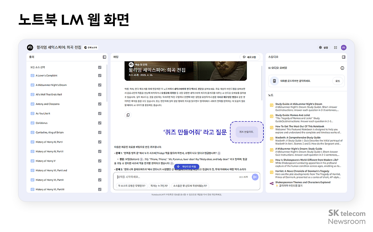시험 시간이 다가오면 강의 영상, 녹음, PDF, 웹 링크 등 정리해야 할 자료가 쌓인다. 노트북 LM은 이런 자료를 빠르게 요약, 정리해 주는 AI 툴이다. 특히, 강의 자료 요약, 복습, 지식 정리에 특화되어 있어 빠른 복습과 개념 파악에 활용하기 좋다.