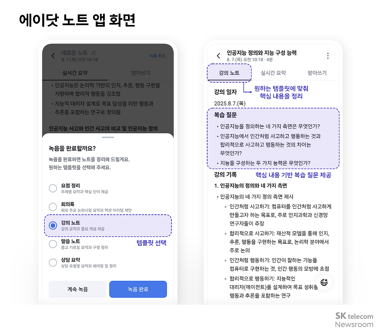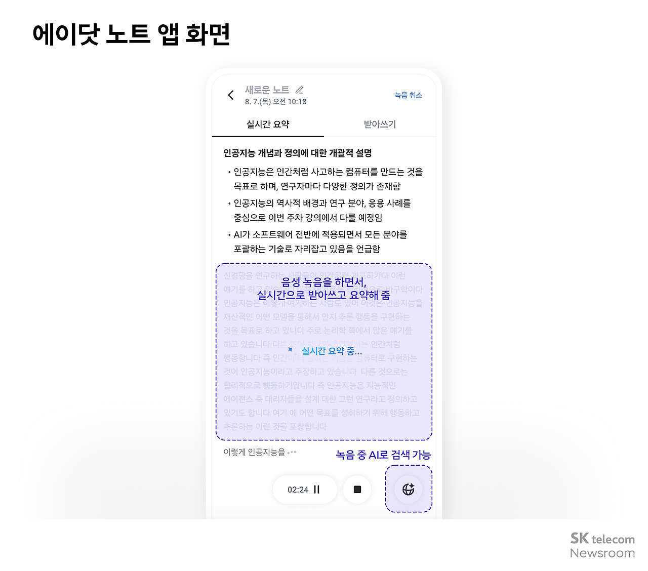 강의를 놓칠 일 없도록 음성 녹음/요약해 주고, 개인 비서 역할 하는 ‘에이닷’