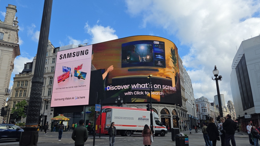 ▲삼성전자가 영국 런던 피카딜리 광장에서 진행하는 ‘삼성 비전 AI(Vision AI)’ 옥외광고 모습